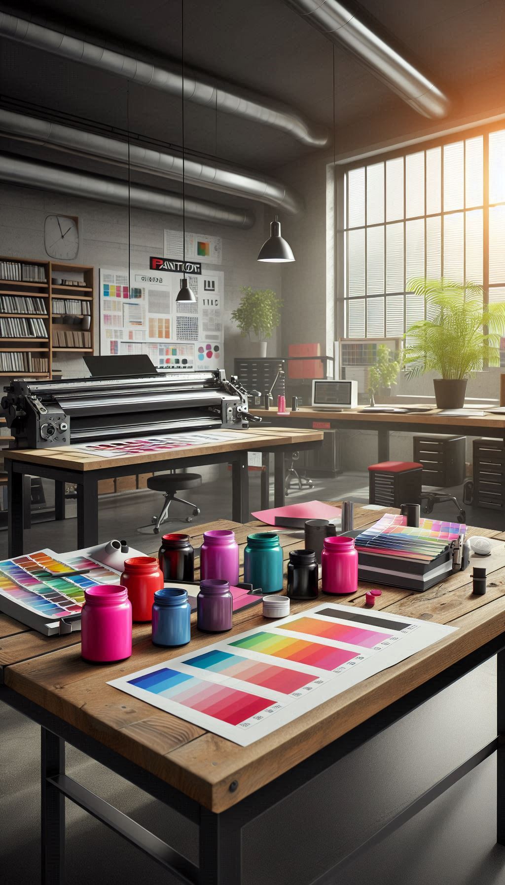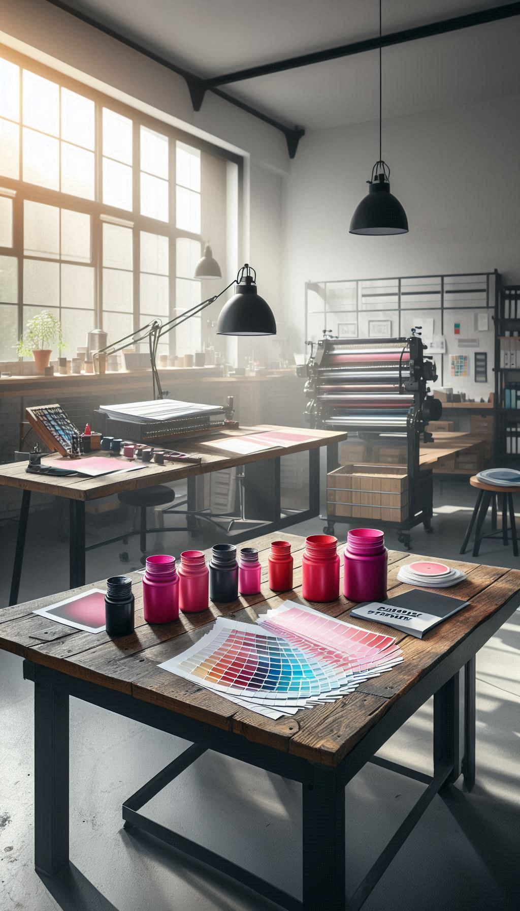 Espacio profesional de diseño gráfico y artes gráficas, por diversión y por pasión, tintas, muestras de color y una impresora de gran formato, sketches, bocetos, tinta y entusiasmo. en acción.